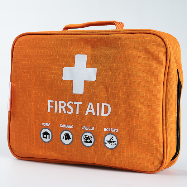One-Aid Första Hjälpen-Kit Orange – Stor är ett fullt utrustat akutkit utformat för att hantera ett brett spektrum av skador, inklusive blödningar, mindre brännskador, stukningar och chock. Den orangea väskan med hög synlighet är tillverkad av 100 % slitstark nylon och har flera fack för att organisera och skydda innehållet. Alla medicinska produkter inuti är CE-märkta och noggrant utvalda för att ge effektiv första hjälpen i hemmet, skolan, på arbetsplatsen eller i offentliga miljöer.