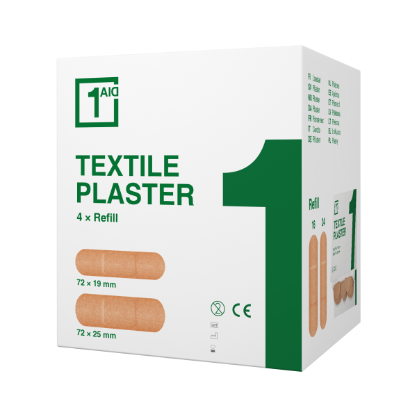 Förpackningen innehåller fyra plåsterark, där varje ark har 40 plåster. Passar bland annat de vanligaste första hjälpen-stationerna.