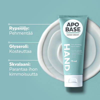 Apobase Hand Cream on nopeasti imeytyvä ja kostetuttava käsivoide, joka vahvistaa ihon suojakerrosta. Sopii kuivalle, erittäin kuivalle ja herkälle iholle päivittäiseen käyttöön.