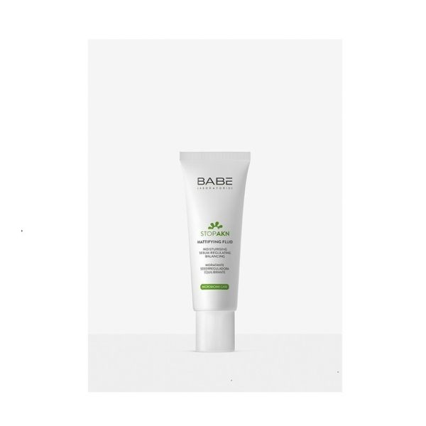 BABE Stop AKN Mattifying Fluid on erittäin kevyt ja nopeasti imeytyvä kosteusvoide, joka on suunniteltu erityisesti rasvoittuvan ja epäpuhtauksille alttiin ihon päivittäiseen hoitoon. Se tarjoaa iholle tehokasta kosteutusta hyaluronihapon ja pantenolin avulla, samalla kun se hillitsee välittömästi ihon liiallista kiiltoa ja säätelee talintuotantoa.
