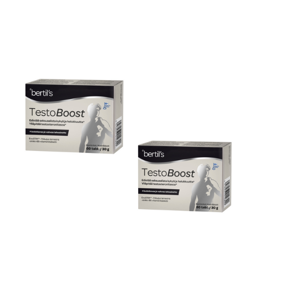 bertil´s Testo Boost on luotettava Suomessa kehitetty ja valmistettu yhdistelmävalmiste, joka on huolellisesti suunniteltu erityisesti miehistä hyvinvointia ajatellen - normaalin testosteronitason ylläpitoon ja seksuaalisen halukkuuden ja kyvyn edistämiseen. Se sisältää 4 luotettavaa, tutkittua ja vahvaa tehoainetta: EnoSTIM™ -kasviuuteseoksen, Tribulus terrestris -uutteen, sinkkiä ja B6-vitamiinia.