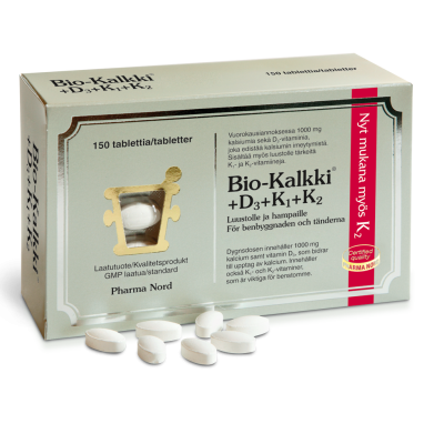 Vahva ja hyvin imeytyvä kalsiumvalmiste, joka sisältää myös D- ja K-vitamiineja tukemaan luuston ja hampaiden hyvinvointia. Kalsium edistää lihasten normaalia toimintaa ja hermovälitystä, D-vitamiini tehostaa kalsiumin imeytymistä ja K-vitamiini auttaa pitämään luut normaaleina. Piparmintun makuiset tabletit voidaan niellä tai pureskella. Valmistettu farmaseuttisten laatuvaatimusten mukaisesti.