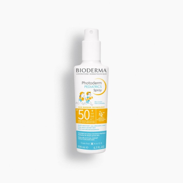 Bioderma Photoderm Pediatrics Spray SPF50+ on erittäin korkean suojakertoimen aurinkosuojasuihke lapsille. Kevyt ja helposti levittyvä koostumus suojaa tehokkaasti lapsen herkkää ihoa auringon UVA- ja UVB-säteiltä. Suihke helpottaa aurinkosuojan tasaista levittämistä ja tekee käytöstä nopeaa ja vaivatonta.