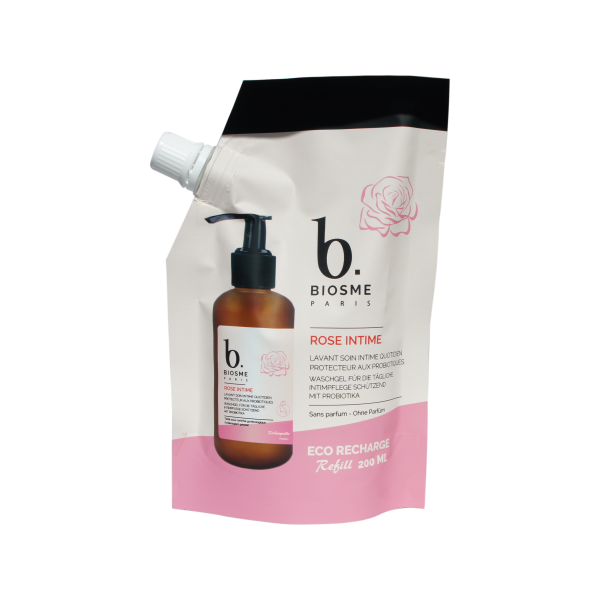 Rose intiimipesugeeli on hellävarainen ja hajusteeton, päivittäiseen käyttöön tarkoitettu puhdistusgeeli, joka sisältää luonnollisia aktiivisia ainesosia ja probiootteja. Se on kehitetty yhteistyössä gynekologien kanssa ja suunniteltu ylläpitämään intiimialueen luonnollista tasapainoa. 98,8% luonnollista alkuperää olevia ainesosia. Vegaaninen. 200ml:n täyttöpakkauksella voit täyttää Biosme Rose intiimipesugeeli 100ml:n pumppupullon kaksi kertaa.