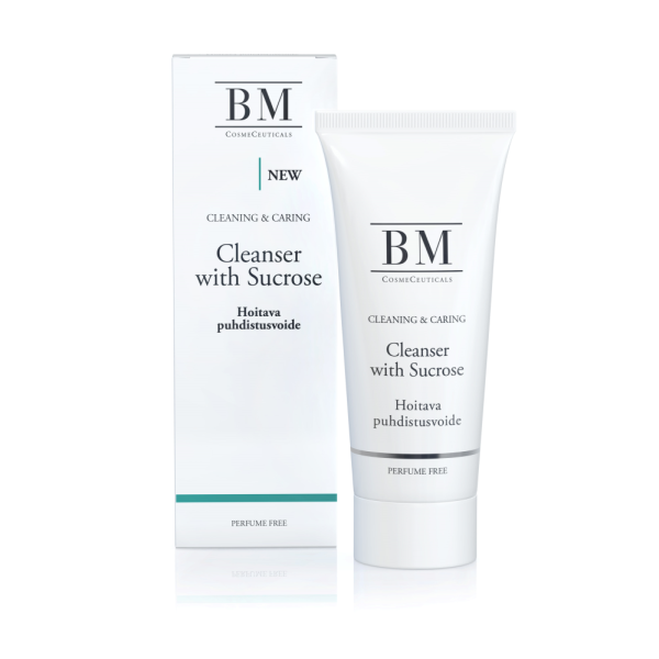 BM Cleanser with Sucrose on ainutlaatuinen Anti-Age puhdistusvoide kaikille ihotyypeille. Se poistaa hellävaraisesti epäpuhtaudet ja meikin iholta, myös silmämeikin.