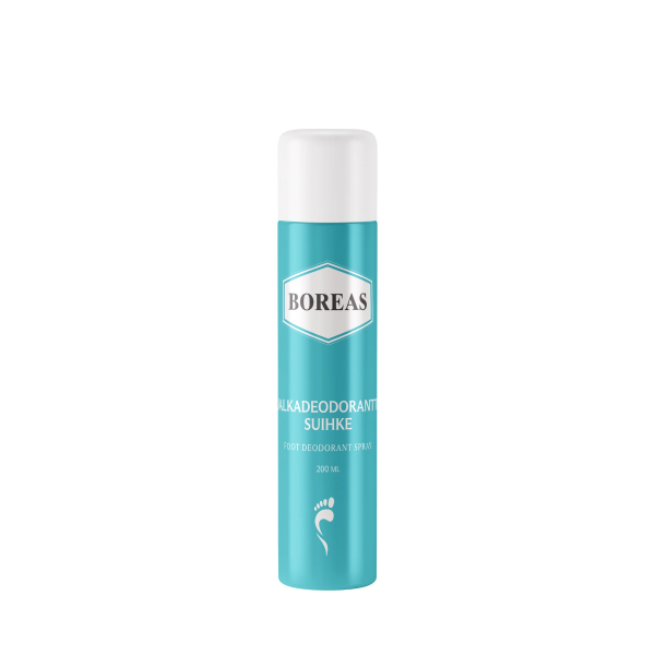 Boreas Jalkadeodoranttisuihke on hoitava ja tehokas suihke, joka pitää jalkojen ihon miellyttävän pehmeänä ja kuivana. Sen sisältämä mentoli antaa välittömän virkistävän ja viilentävän vaikutuksen, joka tuo helpotusta stressaantuneille ja väsyneille jaloille. Jalkadeodorantti tarjoaa pitkäkestoista raikkautta ja siinä on miellyttävä tuoksu, joka tekee käytöstä nautinnollista. Tuote on erinomainen valinta päivittäiseen jalkojenhoitoon pitämään jalat raikkaina koko päivän.