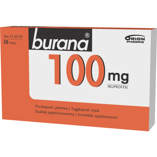 Burana 100 mg purukapseli, pehmeä on appelsiininmakuinen ibuprofeenia sisältävä vaihtoehto kivun ja kuumeen lievittämiseen yli 4-vuotiaille lapsille sekä aikuisille. Tämä pureskeltava kapseli on suunniteltu tilapäisten oireiden, kuten päänsäryn ja nivelkipujen, hoitoon.