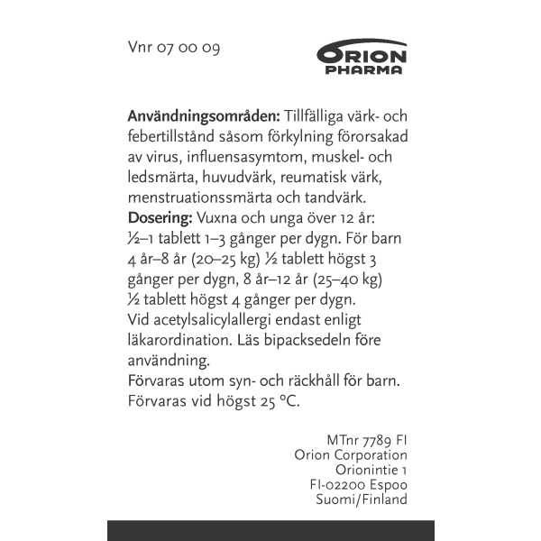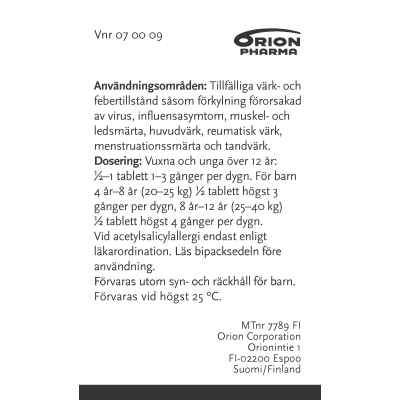 Astmaatikkojen, mahahaavalle alttiiden henkilöiden sekä verenpainetautia tai sydämen vajaatoimintaa sairastavien tulisi neuvotella lääkkeen käytöstä lääkärin tai apteekin farmaseuttisen henkilökunnan kanssa kanssa ennen käyttöä.