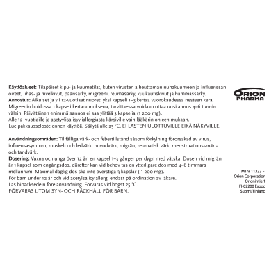 Tilapäisten kipu- ja kuumetilojen hoidossa aikuisille ja yli 12-vuotiaille lapsille 1 kapseli 1–3 kertaa vuorokaudessa. Migreenin hoidossa 1 kapseli kerta-annoksena heti oireiden ilmaantuessa ja tarvittaessa annoksen voi uusia 4–6 tunnin välein; korkeintaan 3 kapselia päivässä (1200 mg). Alle 12-vuotiaille lapsille vain lääkärin ohjeen mukaan. Kapselit eivät sovellu alle 40 kg painaville.