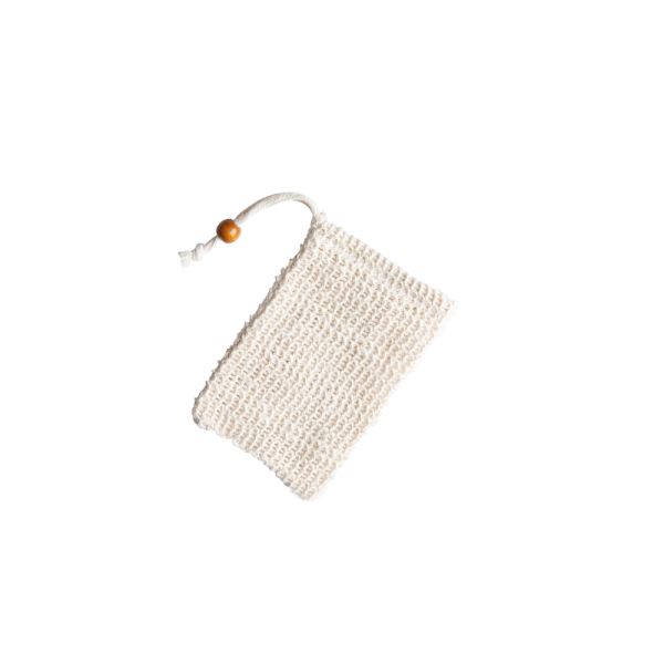 Juutista ja puuvillasta valmistettu saippuapussi palasaippualle ja -shampoolle.