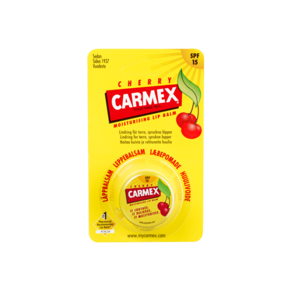 Tar en hand om torra och spruckna läppar. Resultatet blir mjuka och friska läppar. Carmex Cherry – läppbalsamet har en fräsch doft av körsbär. Produkten har också solskydd SPF 15 och är vattentålig i upp till 80 minuter.