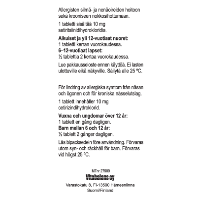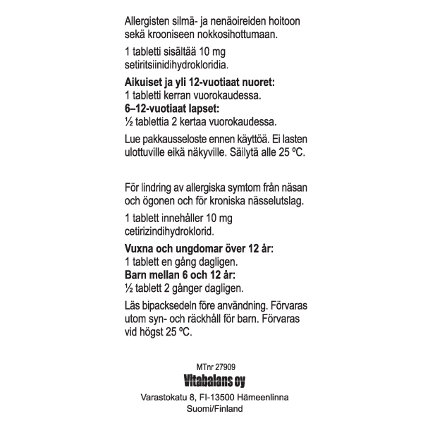 Allergisen nuhan oireiden hoito ja esto. Lisäksi pitkäaikaisen nokkosihottuman eli urtikarian hoito.