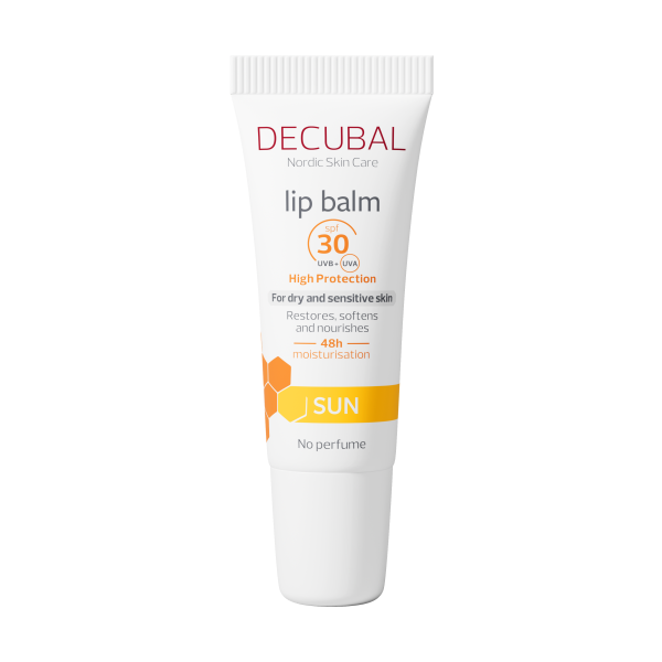 Decubal Sun Lip Balm SPF30 on ravitseva ja kosteuttava huulivoide, joka tarjoaa korkean suojan auringon UVA- ja UVB-säteilyä vastaan. Se on kehitetty erityisesti kuiville ja herkille huulille ehkäisemään auringon aiheuttamaa kuivumista ja halkeilua. Voide sisältää hoitavia ainesosia, kuten E-vitamiinia ja luonnollisia öljyjä, jotka pehmentävät huulia ja vahvistavat niiden suojamuuria.