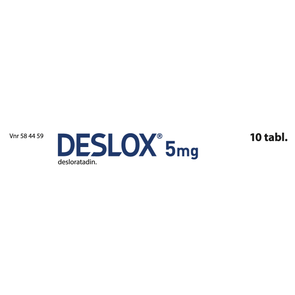 Deslox on allergialääke, joka sisältää antihistamiini desloratadiinia. Deslox auttaa hillitsemään allergisia reaktioita ja niiden oireita aikuisilla ja vähintään 12-vuotiailla nuorilla. Yli 30 tabletin pakkauskoot on tarkoitettu vain lääkärin aiemmin toteamien allergisten oireiden hoitoon. Pitkäaikaiseen käyttöön ja alle 12-vuotiaille lapsille vain lääkärin ohjeen mukaan.