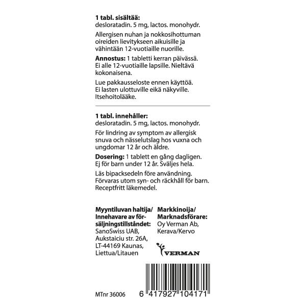 Lääkettä käytetään allergisen nuhan hoitoon. Lisäksi sillä voidaan hoitaa pitkäaikaista nokkosihottumaa eli urtikariaa.