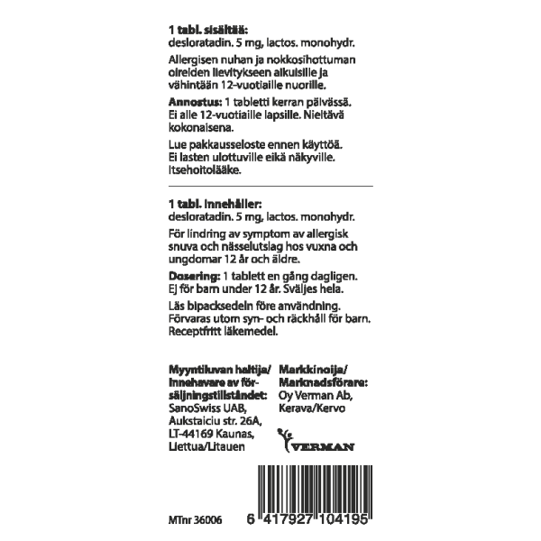Lääkettä käytetään allergisen nuhan hoitoon. Lisäksi sillä voidaan hoitaa pitkäaikaista nokkosihottumaa eli urtikariaa.