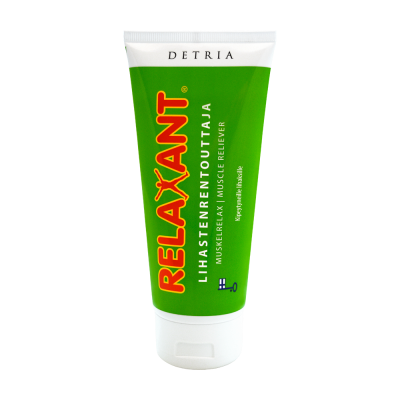 Detria Relaxant® Lihastenrentouttaja on tarkoitettu rasituksesta kipeytyneiden niskojen, hartioiden ja lihasten hierontaan. Voide rentouttaa särkeviä lihaksia, vilkastuttaa niiden aineenvaihduntaa sekä vähentää suonenvetoja. Toimii myös tehokkaana täsmähoitona lasten kasvukipuihin.