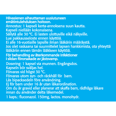 Diflucanin vaikuttava aine on flukonatsoli ja se on tarkoitettu hiivasienen aiheuttaman emätintulehduksen (Candida-vaginiitti) hoitoon naisille, joilla on aikaisemmin ollut lääkärin toteama hiivasienitulehdus. Hiivasienitulehduksen oireita ovat mm. kutina ja kirvely emättimessä ja ulkosynnyttimissä. Keskustele lääkärin kanssa ennen kuin käytät Diflucan-kapseleita, jos olet alle 16-vuotias tai yli 50-vuotias.