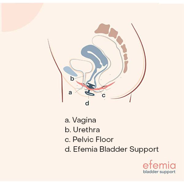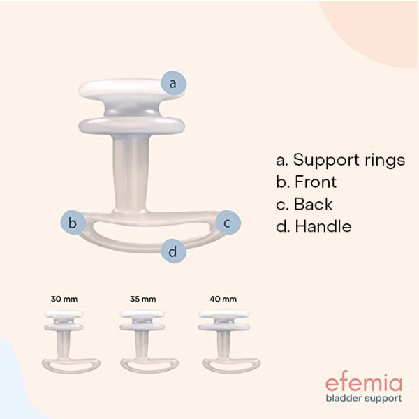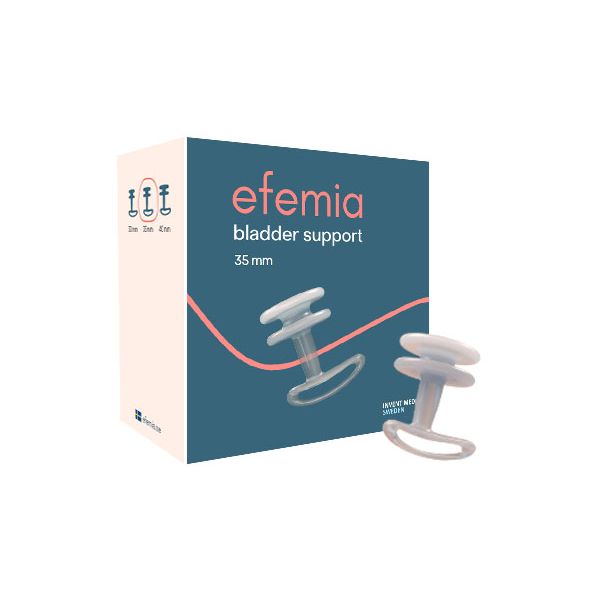 Silikonista valmistettu Efemia-rakkotuki on pehmeä ja miellyttävä käyttää. Se on tarkoitettu käytettäväksi tahattoman virtsankarkailun väliaikaiseen vähentämiseen, kun virtsankarkailu johtuu ponnistusinkontinenssista. CE-merkitty laite.