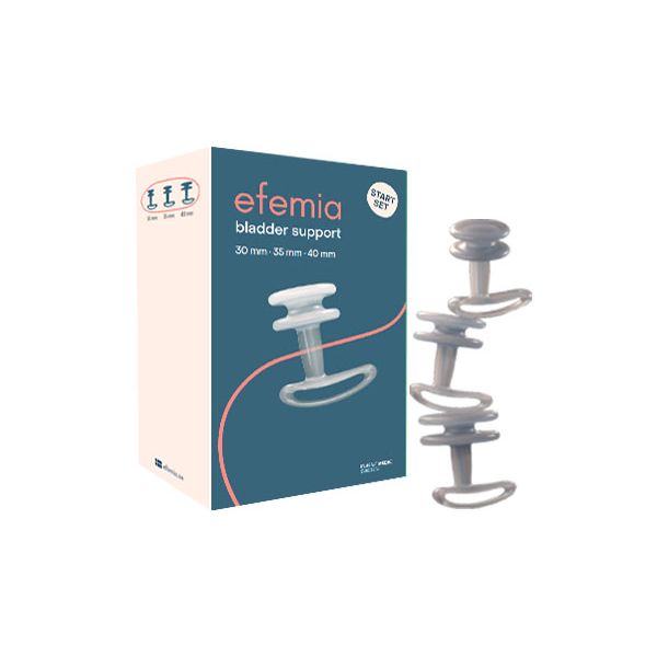 Silikonista valmistettu Efemia-rakkotuki on pehmeä ja miellyttävä käyttää. Se on tarkoitettu käytettäväksi tahattoman virtsankarkailun väliaikaiseen vähentämiseen, kun virtsankarkailu johtuu ponnistusinkontinenssista. CE-merkitty laite.