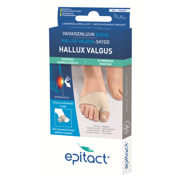 - VINKKI! Jos isovarvasta pystyy yhä liikuttamaan, suosittelemme joustavan, päiväkäyttöön tarkoitetun EPITACT®-oikaisijan käyttämistä vaivaisenluun hoitoon. Se korjaa asentopoikkeamaa, rajoittaa vaivaisenluun etenemistä, lievittää nivelkipua ja estää vaivaisenluun hankautumista.
