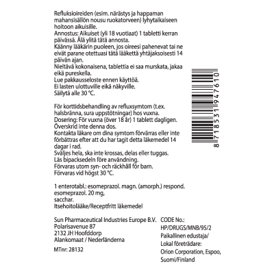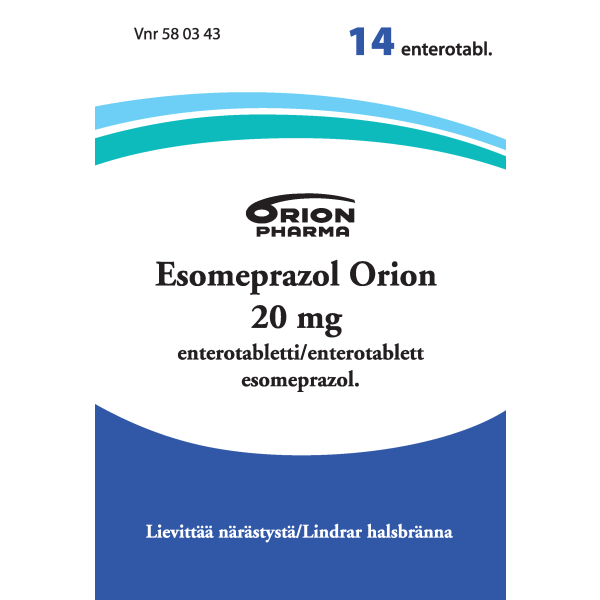Esomeprazol Orion on ns. protonipumpun estäjä, joka vähentää mahahapon muodostumista. Se on tarkoitettu aikuisten refluksioireiden (kuten närästys ja happaman mahanesteen nousu ruokatorveen) lyhytaikaiseen hoitoon.