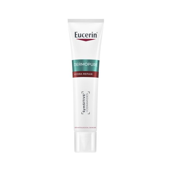 DermoPure Hydra Repair on rauhoittava voide, jonka teho on dermatologisesti suositeltu ja kliinisesti todistettu. Se auttaa palauttamaan ihon suojakerroksen kuivattavien aknelääkkeiden käytön aikana. Voide sisältää Symsitive™-ainesosan ja keramideja, jotka lievittävät välittömästi ihon kirvelyä, polttelua ja kutinaa.