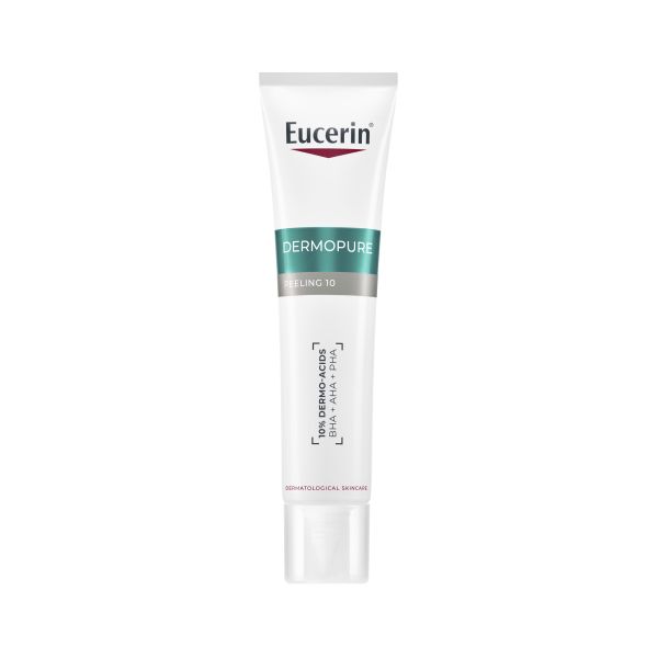 DermoPure Peeling 10 är en kliniskt testad peelingkräm som hjälper till att synligt reparera bestående finnar. Formulan kombinerar salicylsyra (BHA), glykolsyra (AHA) och glukonolakton (PHA) som varsamt exfolierar huden samtidigt som den återfuktar. Krämen minskar akneärr och bromsar de första ålderstecknen, vilket lämnar huden slätare. Effekten syns redan efter första användningen. Passar alla hudtyper och från 12 år.