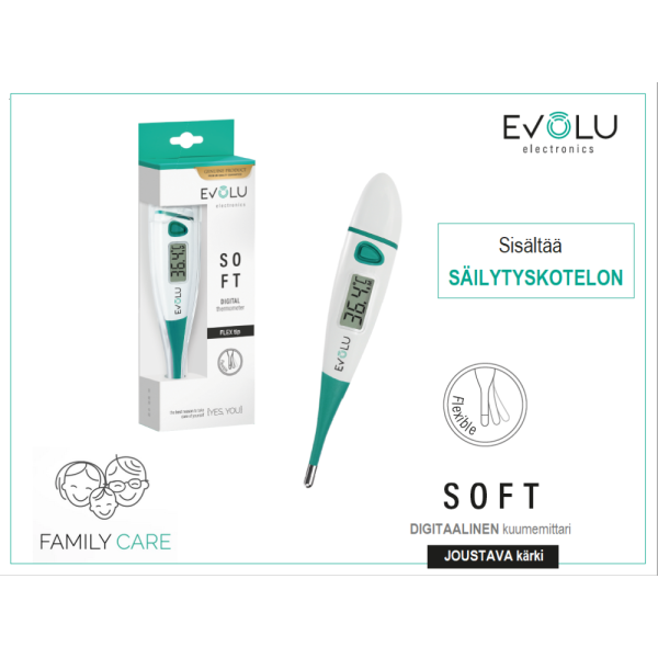 EVOLU Soft on hyvin nopea ja tarkka koko perheen digitaalinen kuumemittari.