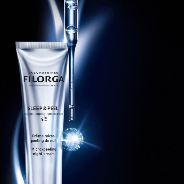 Filorga Sleep & Peel 4.5 on tehokkaasti mikrokuoriva yövoide, joka stimuloi solujen uusiutumista yön aikana ja antaa iholle uuden ja sileän vaikutelman herätessä. Ammattimaisista kuorintahoidoista inspiraationsa saanut koostumus sisältää 4,5 % hydroksihappokompleksia (AHA- ja BHA-hapot) sekä rauhoittavaa ruskeaa levää, joka tekee kuorinnasta hellävaraisen.