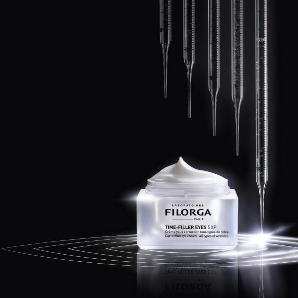 Filorga Time-Filler Eyes 5XP on erittäin tehokas ja monivaikutteinen anti-age-silmänympärysvoide, joka kohdistuu samanaikaisesti viiteen eri silmänympärysalueen huolenaiheeseen. Se on kehitetty korjaamaan silmänulkonurkan ja silmänalusalueen juonteita, tasoittamaan kulmien välistä juonnetta sekä kiinteyttämään roikkuvia yläluomia ja häivyttämään tummia silmänalusia.