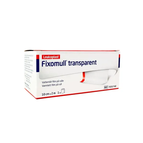 Fixomull transparent on laajoille ihoalueille soveltuva, vedenkestävä kiinnitysmateriaali, joka suojaa kontaminaatiolta ja antaa ihon hengittää.