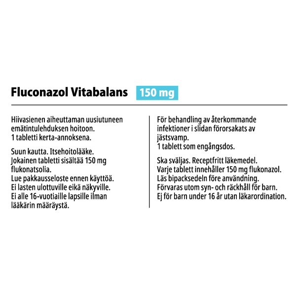 Fluconazol Vitabalans kuuluu sienilääkkeiden ryhmään. Sen vaikuttava aine on flukonatsoli. Ilman reseptiä valmistetta käytetään hiivasienen aiheuttaman emätintulehduksen hoitoon naisilla, joilla on aiemmin ollut lääkärin toteama hiivasienitulehdus.