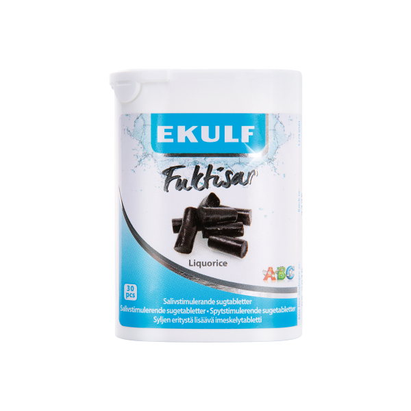 Kuivalle suulle imeskelytabletti, lakritsanmakuinen. lisäämään syljeneritystä ja tasapainottamaan suun pH-arvoa.