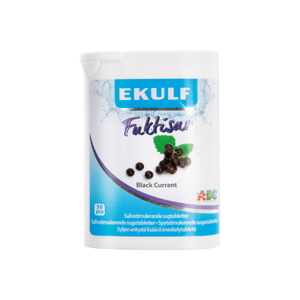 Kuivalle suulle imeskelytabletti, mustaherukan makuinen. Lisäämään syljeneritystä ja tasapainottamaan suun pH-arvoa.