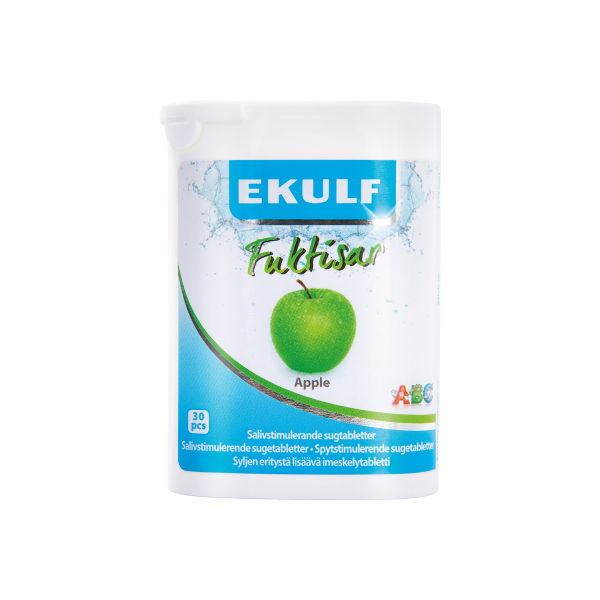 Kuivalle suulle imeskelytabletti, omenan makuinen. Lisäämään syljeneritystä ja tasapainottamaan suun pH-arvoa.