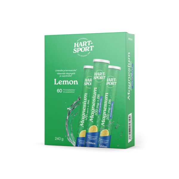 Hart-Sport Magnesium 200 mg + B6 Poretabletti sitruuna Triplapakkaus 3 x 20 tabl