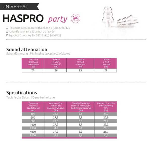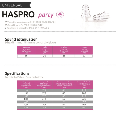 Uudelleenkäytettävät Haspro Party -korvatulpat tarjoavat vertaansa vailla olevan suojan konserteissa, klubeissa, festareilla, ravebileissä ja muissa äänekkäissä tapahtumissa kävijöille.