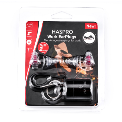 Haspro Work -silikonikorvatulpat on suunniteltu käytettäväksi meluisassa ympäristössä, erityisesti raskaassa teollisuudessa. Korvatulpat ovat uudelleenkäytettäviä ja omaavat korkean ja vahvan vaimennuskyvyn. Vähentävät haitallista melua, mutta mahdollistavat kommunikoinnin ja signaalien kuulemisen.