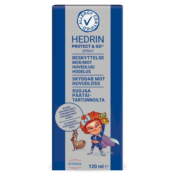 Käytä Hedrin Protect & Go®-valmistetta säännöllisesti aina hiusten pesun jälkeen osana normaalia hiustenhoitoa, vähintään kaksi kertaa viikossa. Tee näin: Sumuta Hedrin Protect & Go®-valmistetta pyyhekuiviin tai kuiviin hiuksiin ja kampaa. Älä huuhtele. Anna kuivua itsekseen tai kuivaa hiustenkuivaajalla. Ole varovainen, ettet sumuta Hedrin Protect & Go®-valmistetta silmiin ja kasvoille. Älä hengitä sumutetta.
