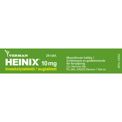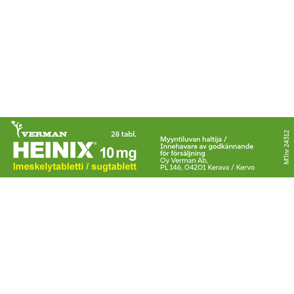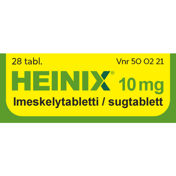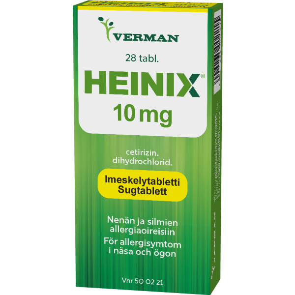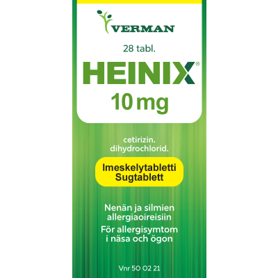 Heinix on allergialääke, jonka vaikuttava aine on setiritsiini. Se on tarkoitettu allergiseen nuhaan liittyvien nenä- ja silmäoireiden hoitoon sekä pitkäaikaisen nokkosihottuman hoitoon. Heinix imeskelytabletti ei sovellu alle 6-vuotiaille lapsille.