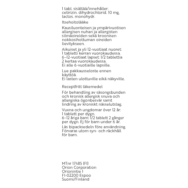 Älä käytä lääkettä, jos olet allerginen setiritsiinille tai lääkkeen muille aineille, jos sinulla on munuaissairaus, olet raskaana tai imetät.
