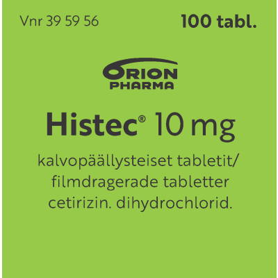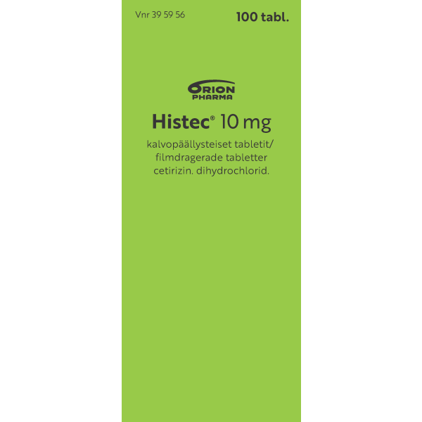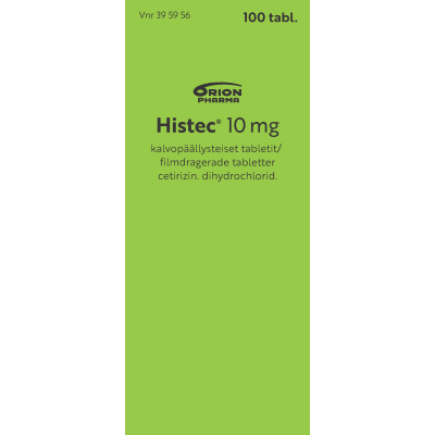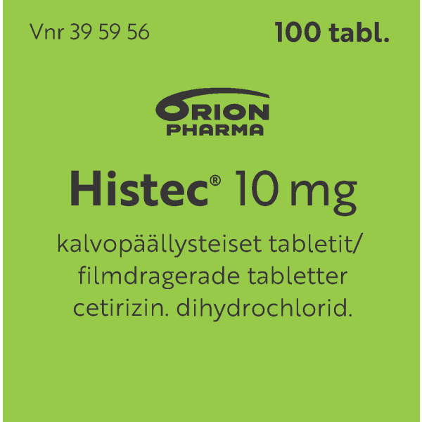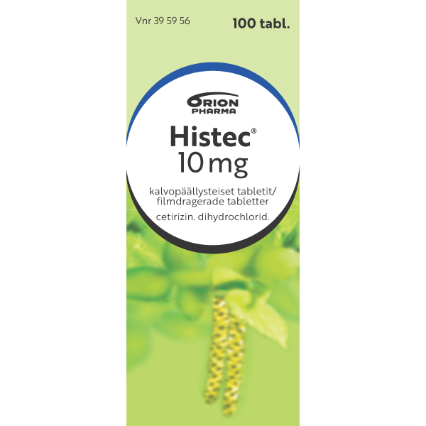 Histecin vaikuttava aine on setiritsiinihydrokloridi. Histec on allergialääke ja se on tarkoitettu aikuisten ja vähintään 6-vuotiaiden lasten kausiluonteiseen ja ympärivuotiseen allergiseen nuhaan liittyvien nenä- ja silmäoireiden hoitoon sekä pitkäaikaisen nokkosihottuman (kroonisen idiopaattisen urtikarian) hoitoon. Alle 6-vuotiaille tai pitkäaikaiseen käyttöön vain lääkärin määräyksestä.