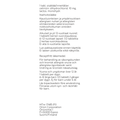 Aikuiset ja yli 12-vuotiaat: 1 tabletti (10 mg) kerran vuorokaudessa