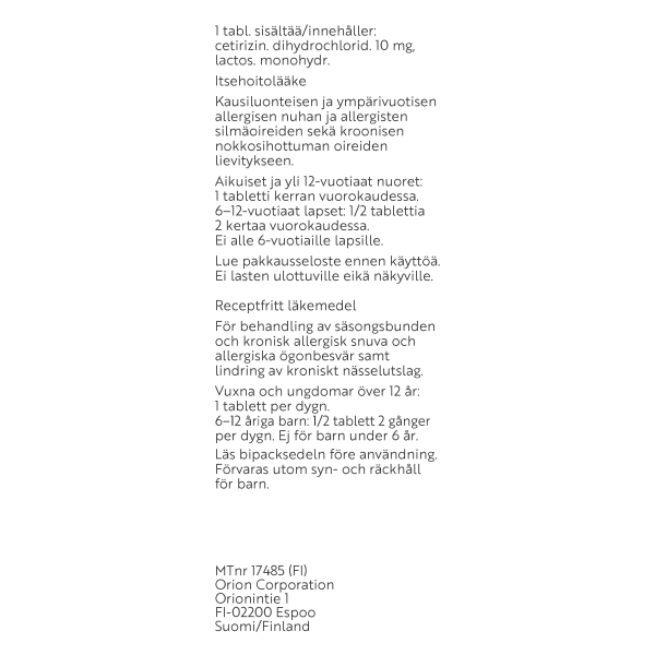 Älä käytä lääkettä, jos olet allerginen setiritsiinille tai lääkkeen muille aineille, jos sinulla on munuaissairaus, olet raskaana tai imetät.