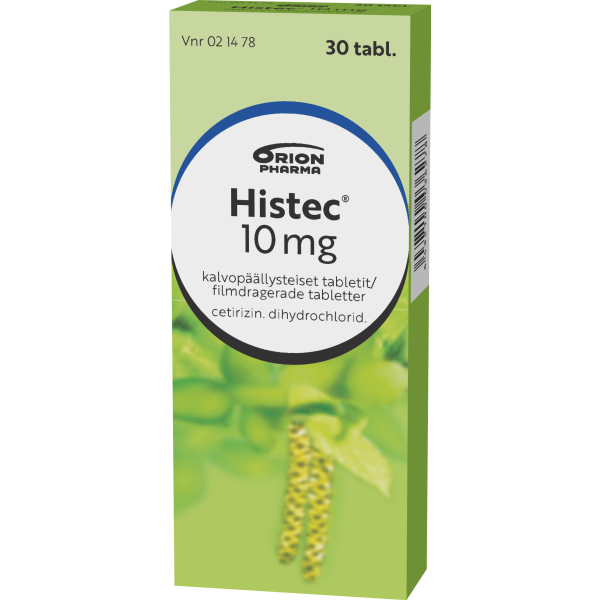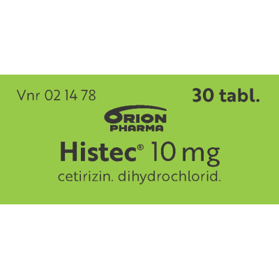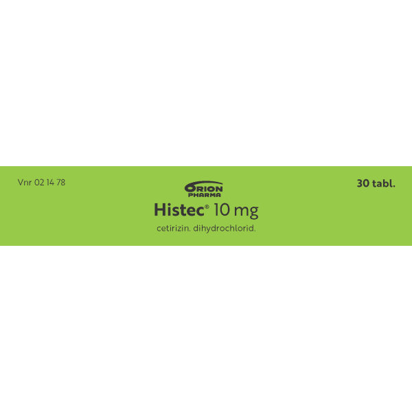 Histecin vaikuttava aine on setiritsiinihydrokloridi. Histec on allergialääke ja se on tarkoitettu aikuisten ja vähintään 6-vuotiaiden lasten kausiluonteiseen ja ympärivuotiseen allergiseen nuhaan liittyvien nenä- ja silmäoireiden hoitoon sekä pitkäaikaisen nokkosihottuman (kroonisen idiopaattisen urtikarian) hoitoon. Alle 6-vuotiaille tai pitkäaikaiseen käyttöön vain lääkärin määräyksestä.