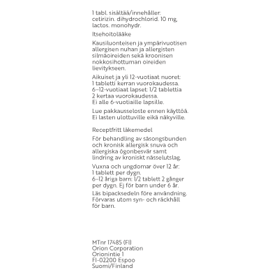 Älä käytä lääkettä, jos olet allerginen setiritsiinille tai lääkkeen muille aineille, jos sinulla on munuaissairaus, olet raskaana tai imetät.