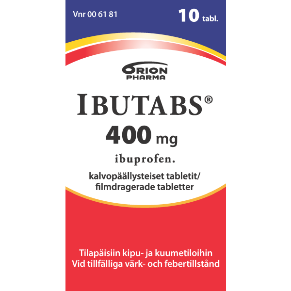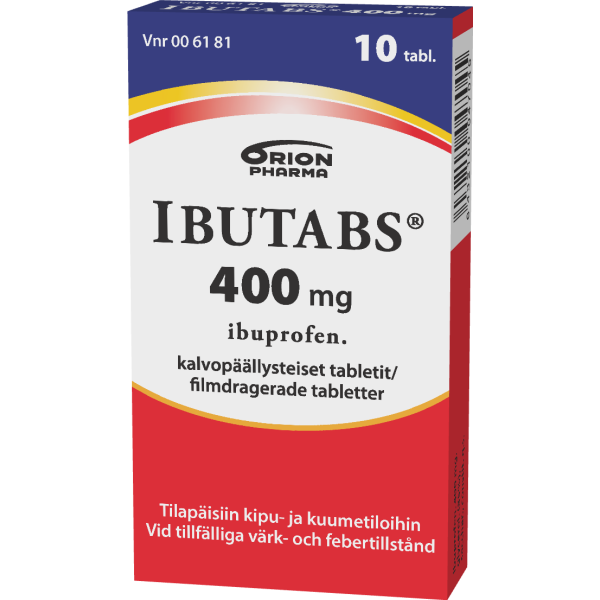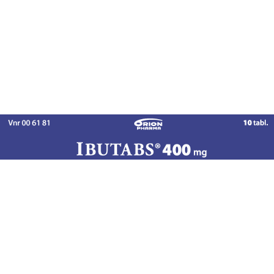 Ibutabs 400 mg tabletti tilapäisiin kuume-ja kiputiloihin aikuisille ja yli 20 kg painaville lapsille. Vaikuttava aine ibuprofeeni. Pitkäaikaiseen käyttöön vain lääkärin määräyksestä. Pakkauskoot 10 ja 30 tabl.