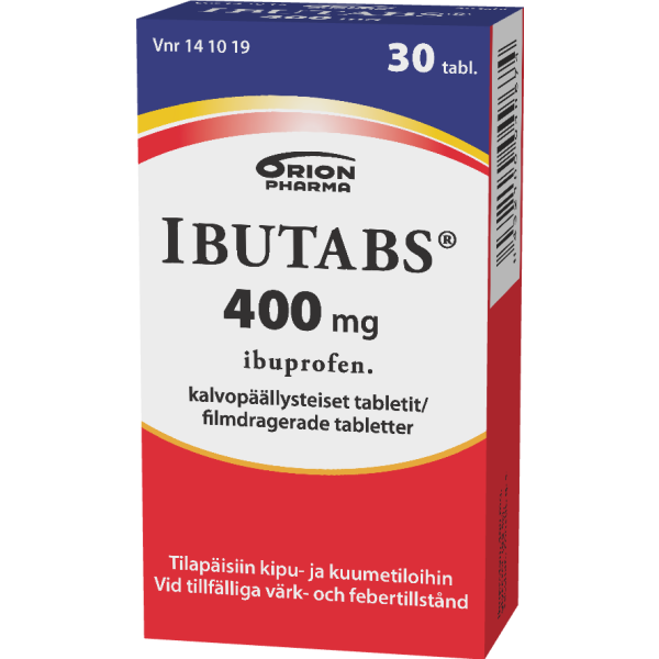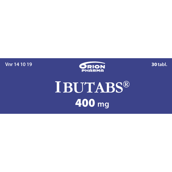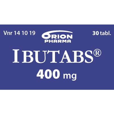 Ibutabs 400 mg tabletti tilapäisiin kuume-ja kiputiloihin aikuisille ja yli 20 kg painaville lapsille. Vaikuttava aine ibuprofeeni. Pitkäaikaiseen käyttöön vain lääkärin määräyksestä. Pakkauskoot 10 ja 30 tabl.