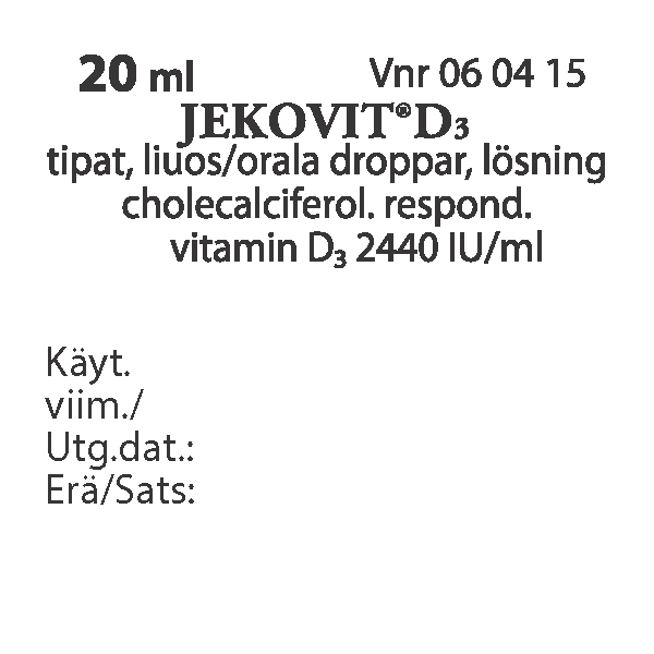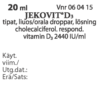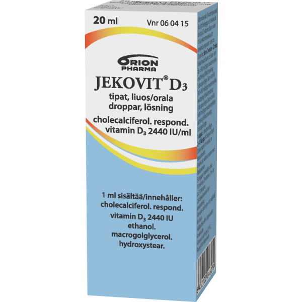 Jekovit D3 on vesipohjainen D3-vitamiinitippa. Sitä käytetään D-vitamiinin puutteen ehkäisyyn ja hoitoon. D-vitamiinin riittävä saanti on tärkeää lapsen luuston normaalin kehityksen kannalta.